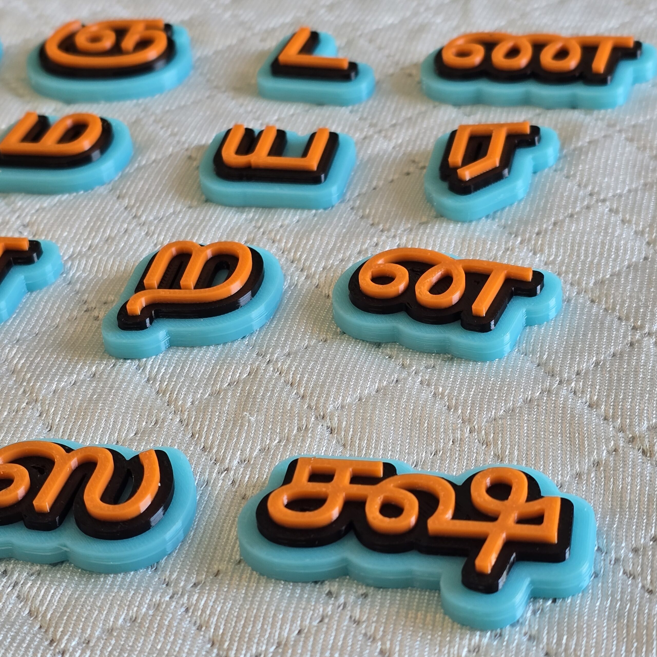 13 Tamil Uyir vowels (உயிர் எழுத்துக்கள்) and 24 Tamil Mei consonants (மெய் எழுத்துக்கள்) Ezhuthukkal Letters from Telugu Alphabets, right from a, Aa, i, ee and Ka na to cover all the vargam of Thamil varnmala. Created in contrasting colours, and good quality recylable plastic, these are intended to help kids aged 3 years and above to learn and recognize Tamil language writing script.