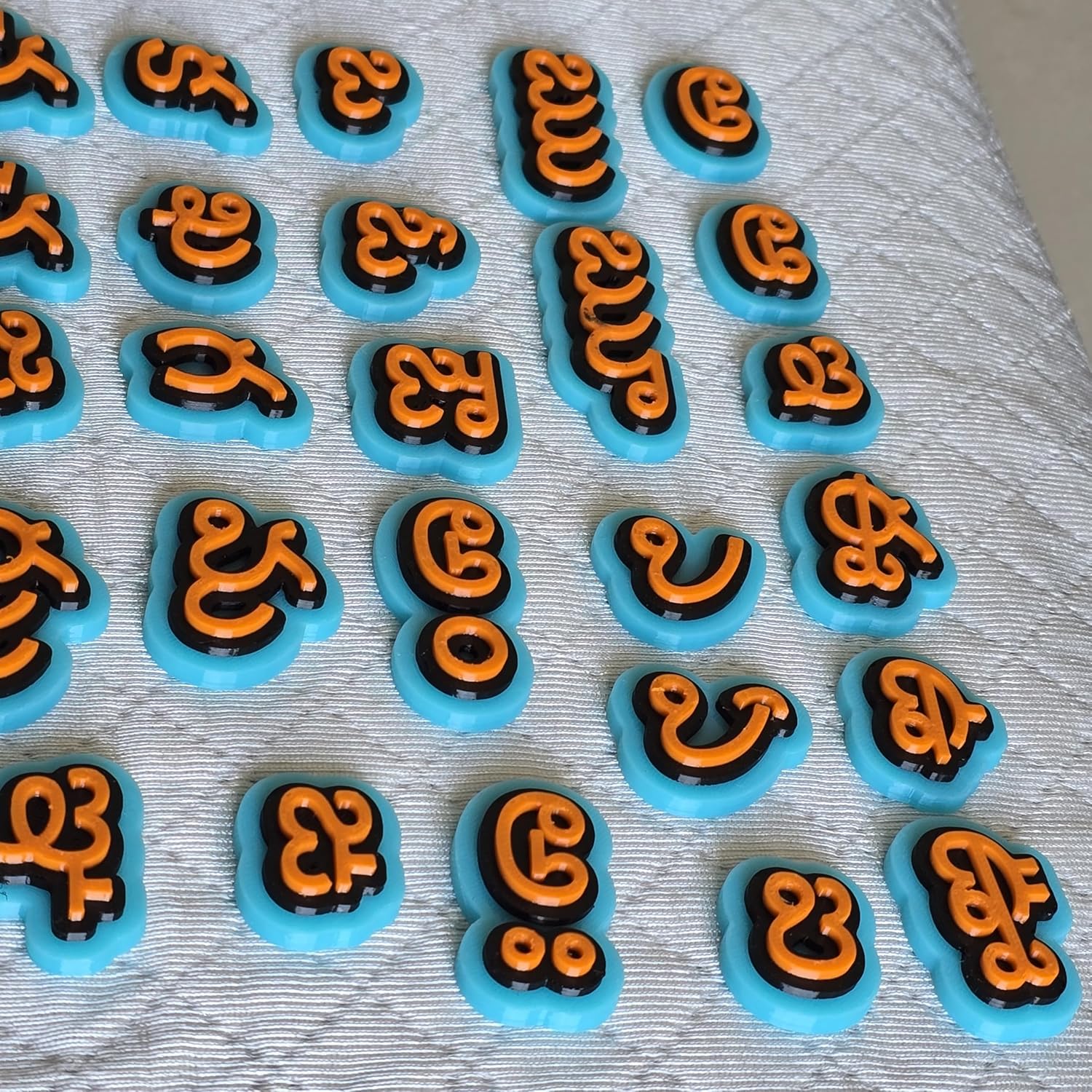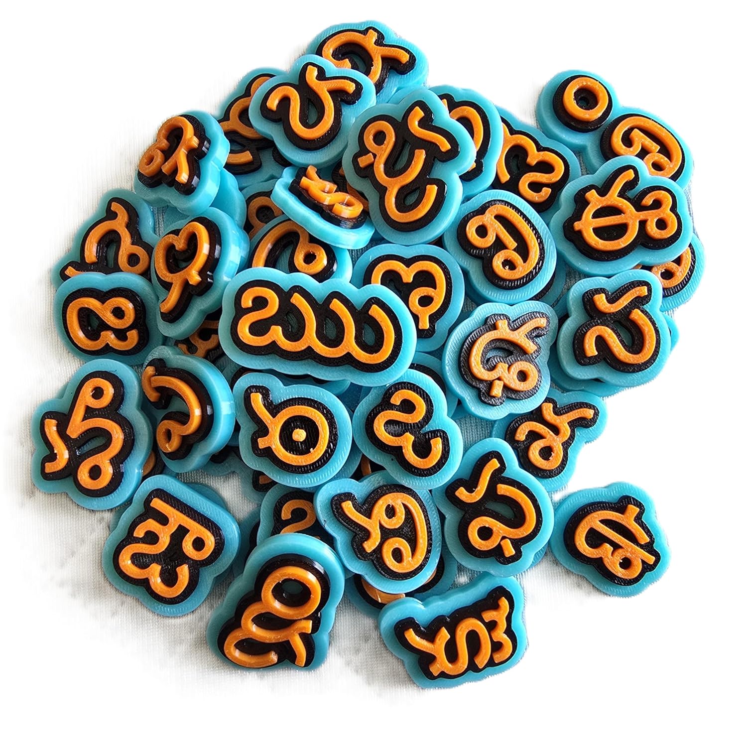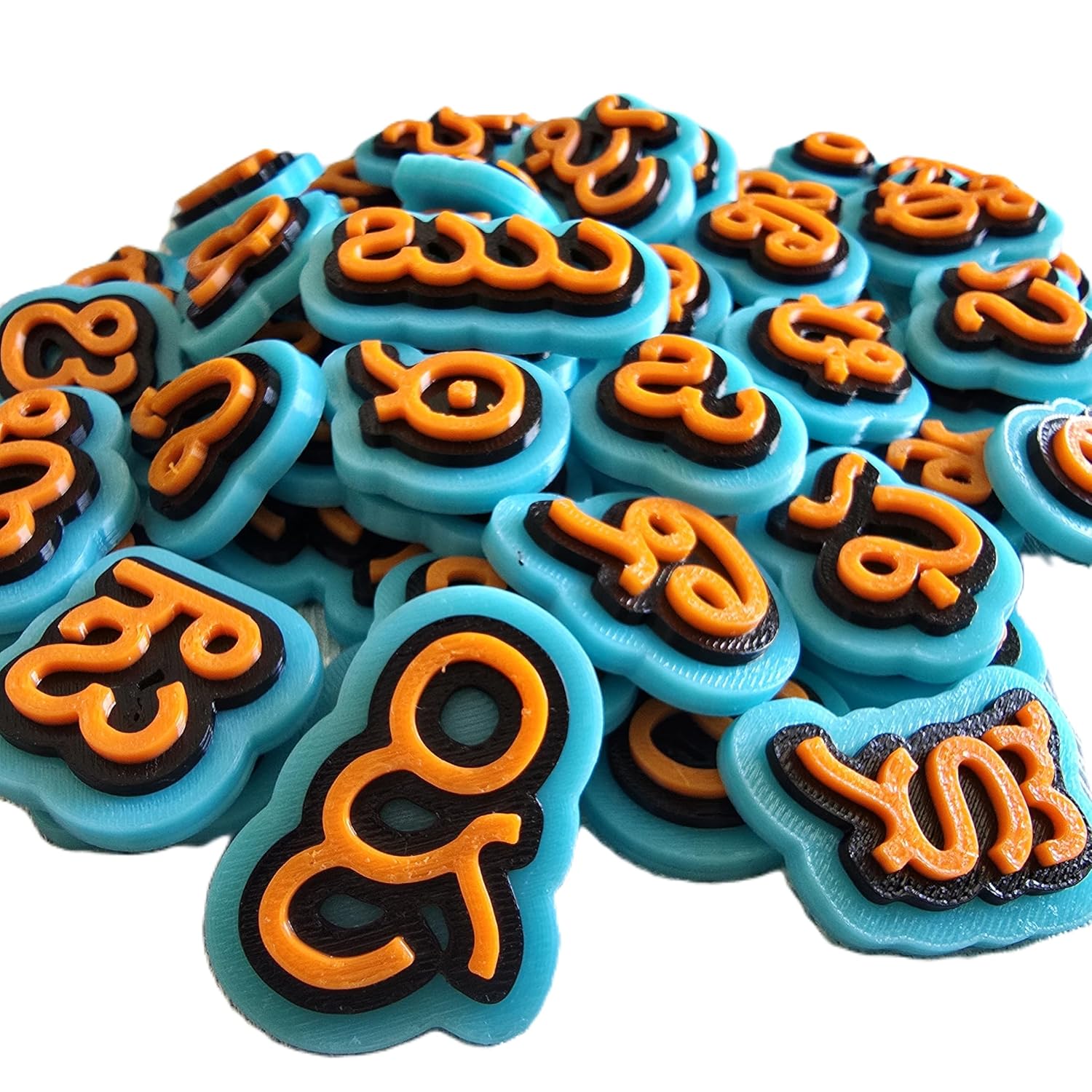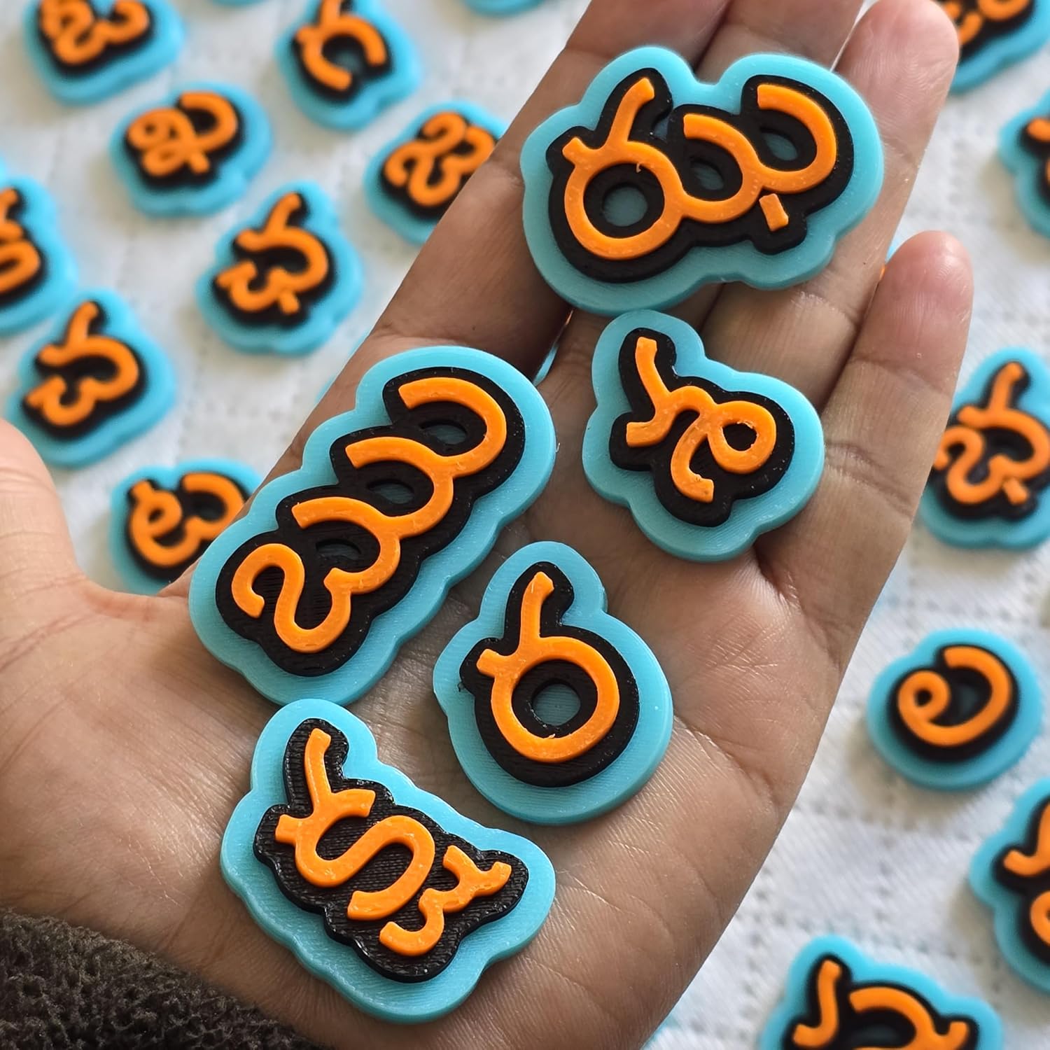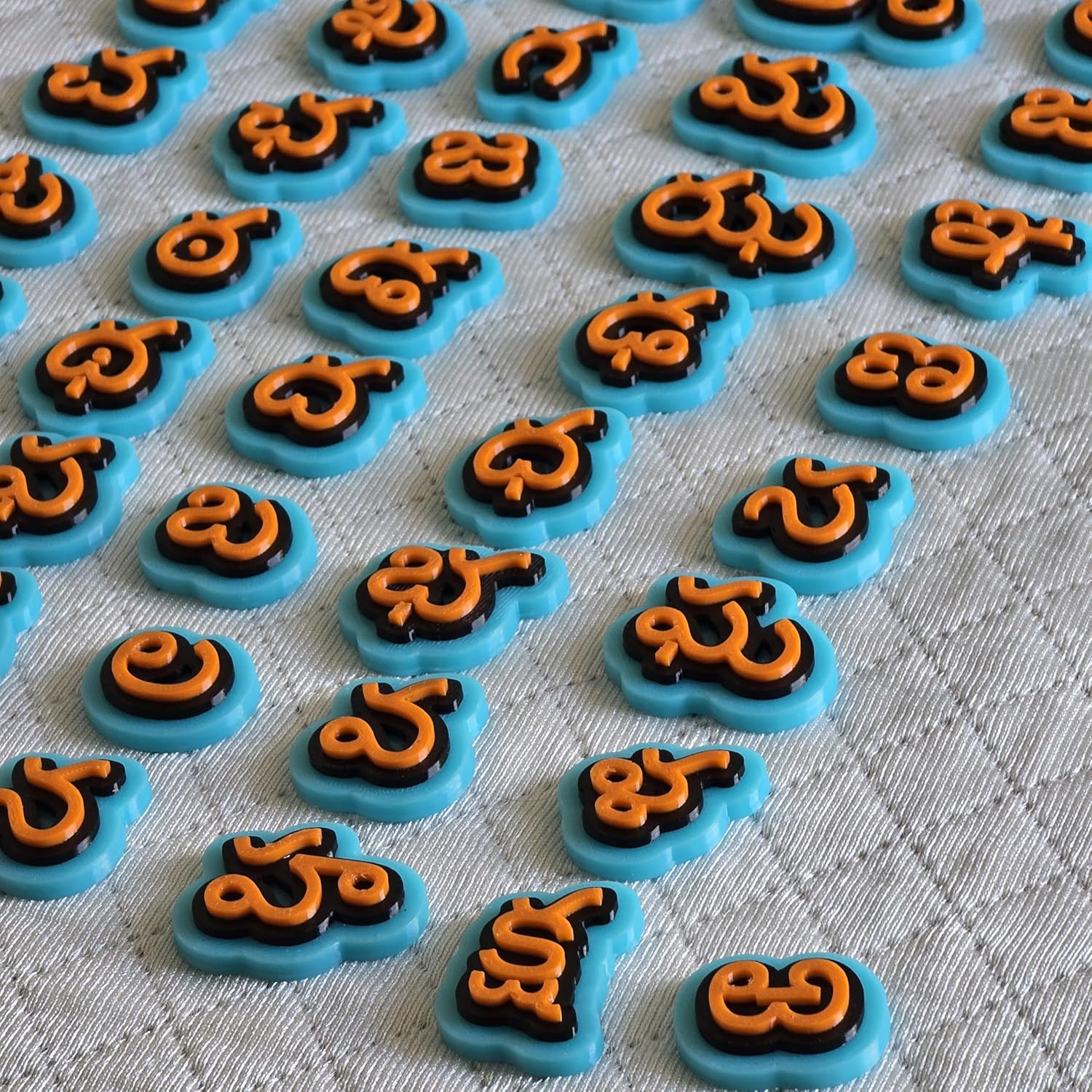 16 Telugu Vowels (అచ్చులు) Achchulu+ 36 Telugu Consonants (హల్లులు) Hallulu Letters from Telugu Alphabets, right from a, Aa, i, ee and Ka kha to cover all the vargam of Telugu varnmala.Created in contrasting colours, and good quality recylable plastic, these are intended to help kids aged 3 years and above to learn and recognize Telugu language writing script.